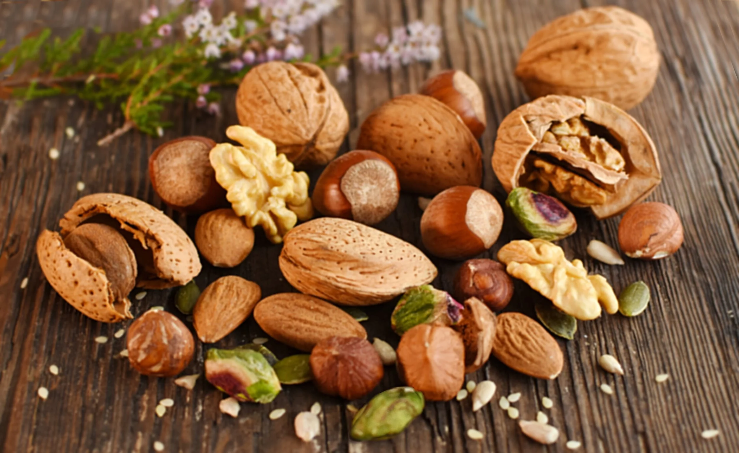 Les oléagineux : amande, noix, noisette, arachide ou cacahuète, pistache, les noix de cajou, les noix de pécan, pignons de pin.