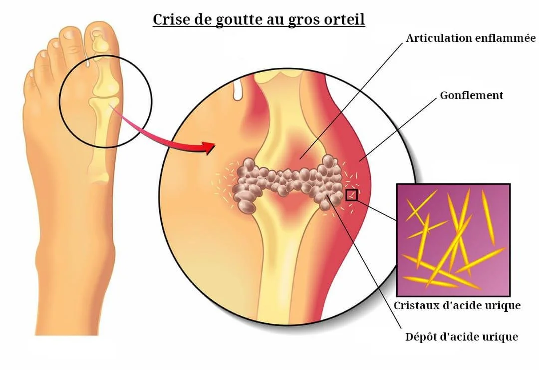 La goutte est la conséquence d'un excès d'acide urique dans le sang. L'acide urique est une substance présente dans le sang et son taux peut se trouver anormalement élevé du fait d’une augmentation de production d'acide urique ou ….